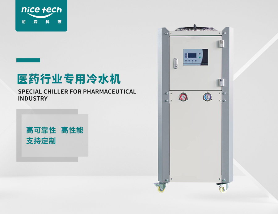 Medical-grade chillers feature sanitary design with efficient compressors and precise temperature control, meeting GMP standards for pharmaceutical and biotech processes.